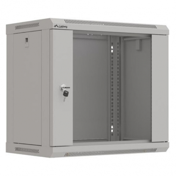 Bastidor de pared cerrado con capacidad para 9U, ideal para instalaciones de red, telecomunicaciones o sistemas electrónicos que requieren una solución compacta y segura. Soporta hasta 60 kg de peso.