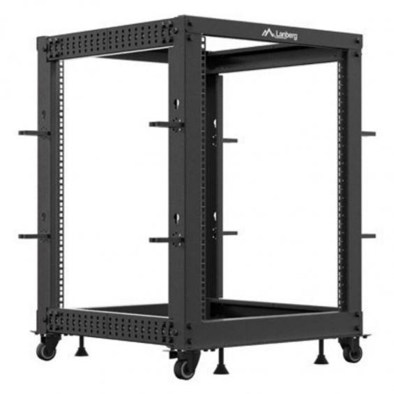 Rack o bastidor independiente de 19 pulgadas (48,3 cm) con diseño abierto, ideal para servidores, equipos de red o sistemas de telecomunicaciones. Ofrece una capacidad de 15U y soporta hasta 600 kg de peso.