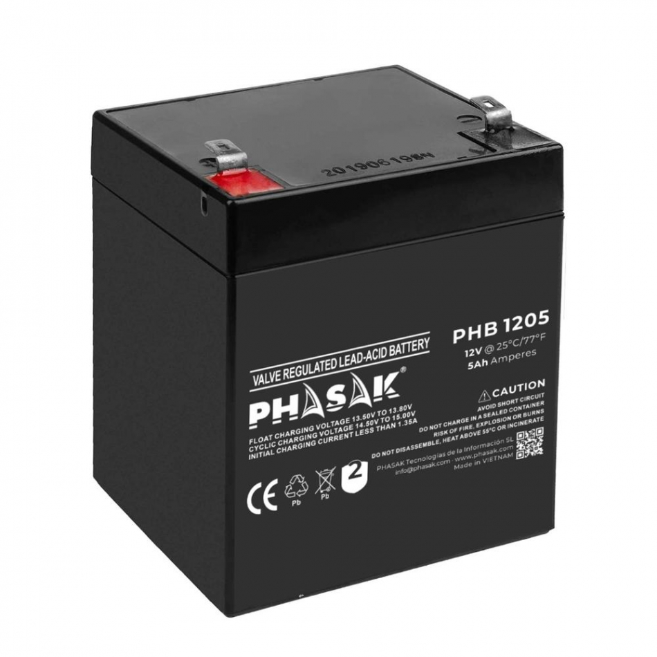 La Batería 12V 5Ah PHASAK PHB 1205 forma parte de la gama de Baterías Selladas PHASAK de Plomo-Ácido de 12V, diseñadas para ofrecer una solución confiable y duradera para las necesidades de