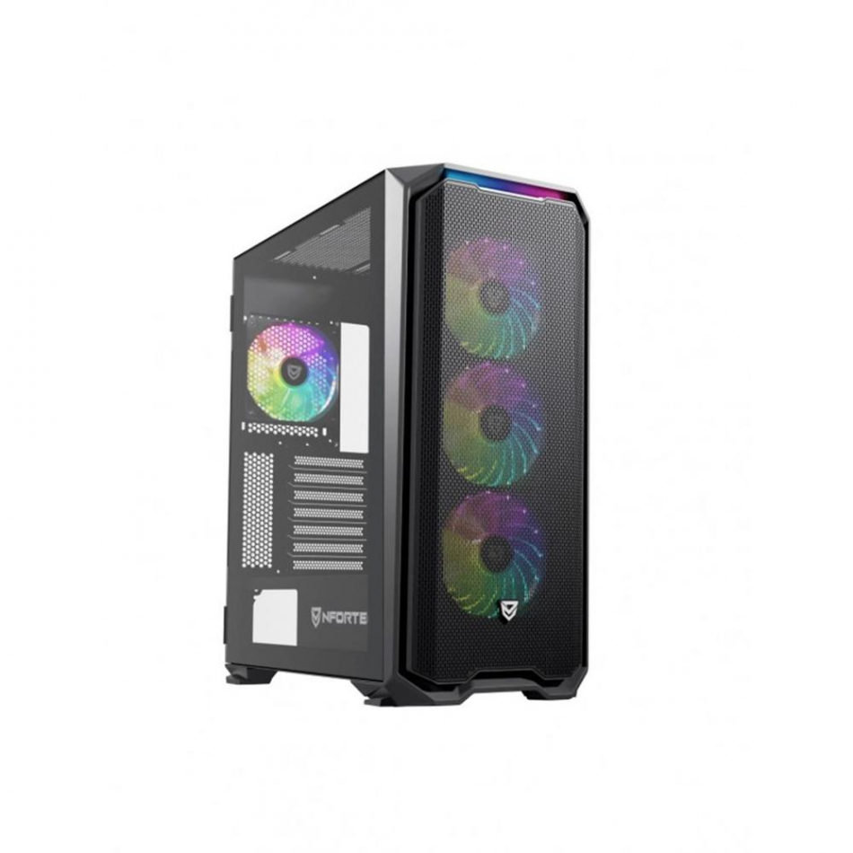 La Nfortec Krater X es una torre de alto rendimiento pensada para los entusiastas del gaming y los usuarios que desean una configuración avanzada con una excelente ventilación, estética moderna y gran capacidad de ampliación. Su diseño con panel de cristal templado y iluminación A-RGB integrada la convierte en una opción ideal para montar un setup llamativo y bien refrigerado.
