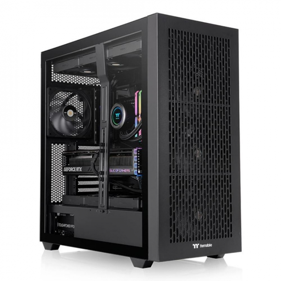 La **Thermaltake AX500** es una caja de tipo **Full Tower** diseñada para entusiastas del PC que buscan **amplitud, compatibilidad extrema y una refrigeración avanzada**. Con un diseño elegante en color negro, paneles de **vidrio templado** y estructura robusta en **acero SPCC**, esta torre es ideal para montar equipos de alto rendimiento con sistemas de refrigeración custom, tarjetas gráficas de gran formato y placas base avanzadas.