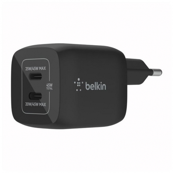El Belkin BoostCharge Pro de 45 W es un cargador compacto y eficiente, diseñado para ofrecer alimentación rápida y segura a tus dispositivos. Gracias a su tecnología GaN (nitruro de galio), proporciona más potencia en un tamaño reducido, ideal para uso diario en casa, en la oficina o durante viajes. Su diseño de 2 puertos USB-C lo hace perfecto para cargar de manera simultánea un móvil y una tablet o dos smartphones.
