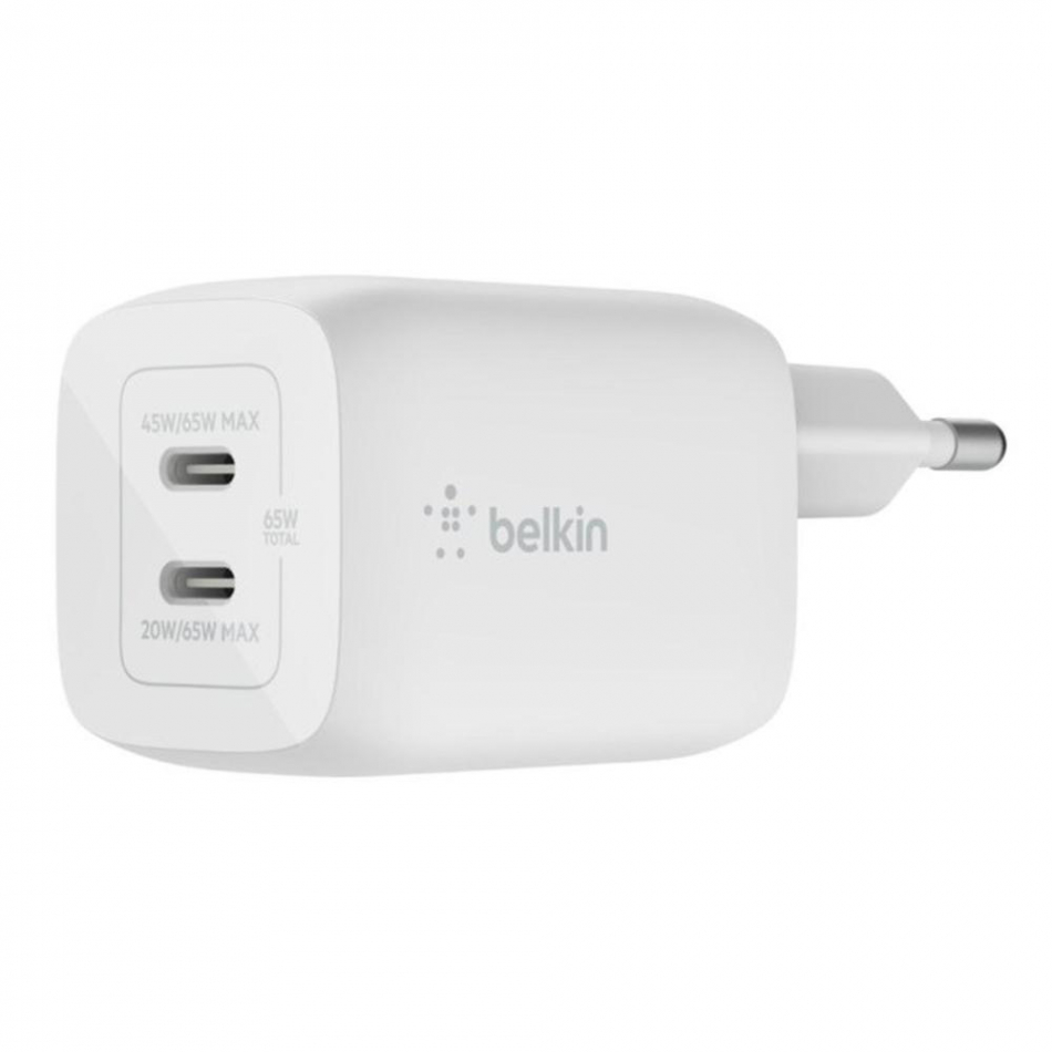 El Belkin WCH013vfWH es un cargador compacto y potente diseñado para cubrir las necesidades de portátiles, smartphones y tabletas. Gracias a la tecnología GaN (nitruro de galio), ofrece una carga más eficiente y segura en un diseño más pequeño y ligero. Con sus 2 puertos USB-C y una potencia máxima de 65 W, es ideal para quienes buscan velocidad y versatilidad en un solo dispositivo.