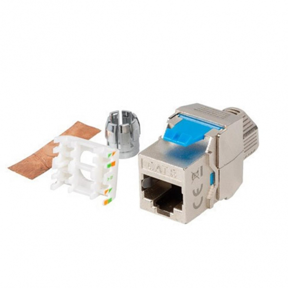 Módulo Keystone RJ-45 de Categoría 8.1 (Cat. 8.1), con apantallamiento tipo S/FTP, diseñado para entornos de red de ultra alta velocidad y máxima protección contra interferencias electromagnéticas.