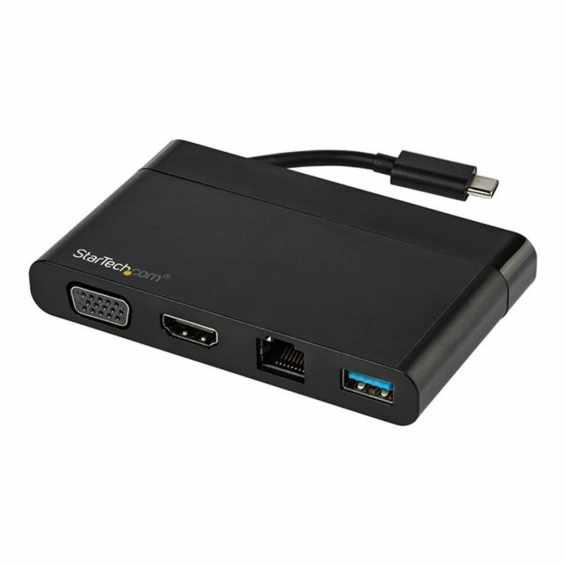 El **adaptador multipuertos USB-C de StarTech.com** es una solución compacta y versátil para profesionales que necesitan ampliar la conectividad de sus dispositivos portátiles. Diseñado para portátiles, ultrabooks y tablets con puerto USB-C, permite conectar simultáneamente salidas de vídeo HDMI o VGA, red Ethernet, periféricos USB y audio, todo a través de un solo cable. Ideal para entornos de oficina, presentaciones o estaciones de trabajo móviles.