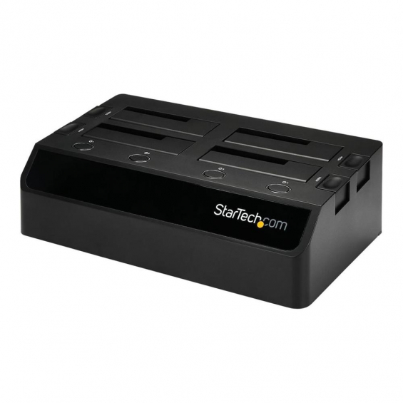 La estación de acoplamiento **StarTech.com de 4 bahías** es una solución profesional y versátil para quienes necesitan gestionar varias unidades de almacenamiento SATA de forma simultánea. Ideal para entornos de trabajo que requieren tareas de clonación, respaldo, recuperación de datos o pruebas de discos, este dock permite conectar hasta **cuatro unidades SATA de 2,5" o 3,5"** con total facilidad gracias a su diseño **hot-swappable** y su conexión **USB 3.0 de alta velocidad**.