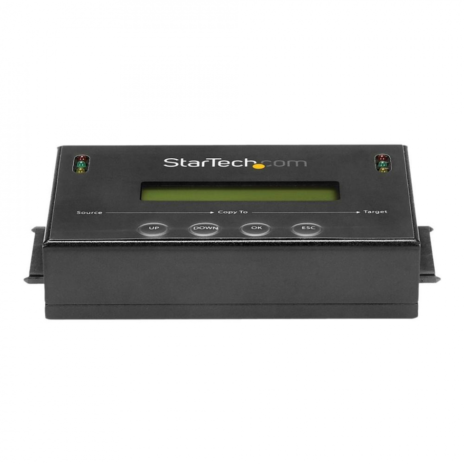El **duplicador de discos duros de StarTech.com** es una herramienta profesional y autónoma diseñada para clonar discos SATA de 2,5" o 3,5" de forma rápida y sencilla. Ideal para técnicos informáticos, centros de reparación o cualquier entorno que requiera una **duplicación fiable y de alto rendimiento**, este dispositivo permite copiar hasta **14 GB por minuto** sin necesidad de un ordenador.