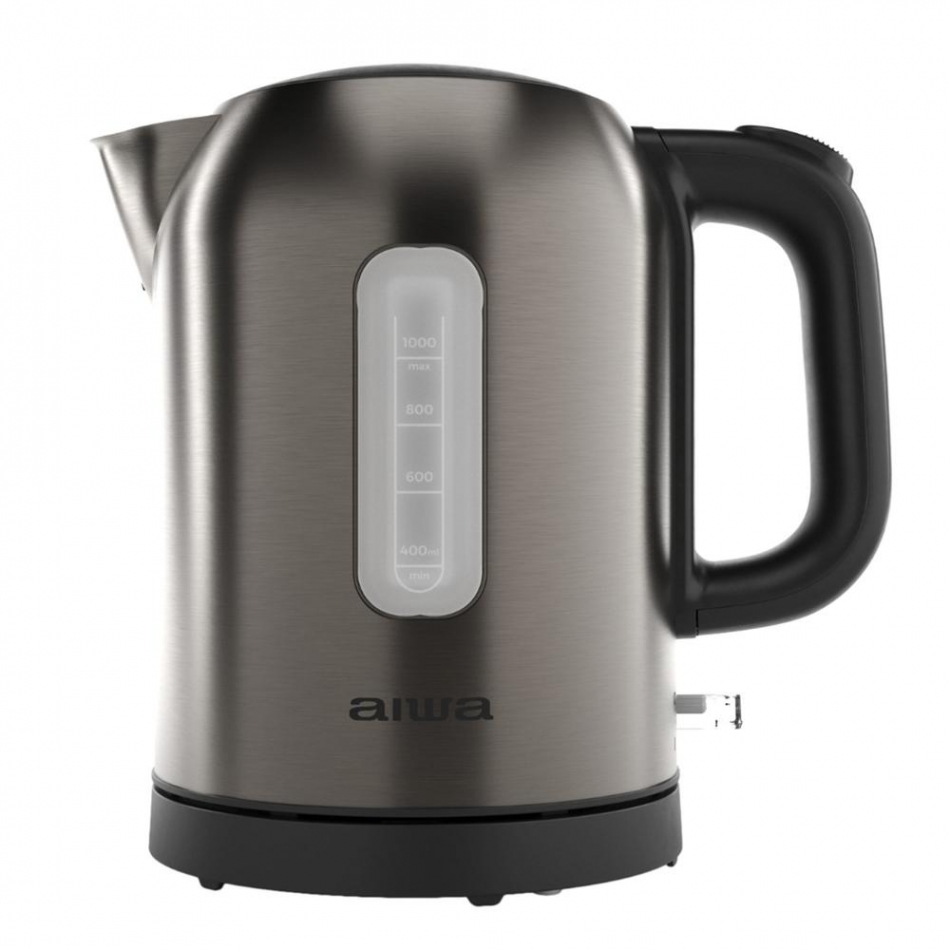 El Aiwa KOTAN AKT-1000 cuenta con un cuerpo de acero inoxidable antihuellas, que no solo mejora la apariencia, sino que facilita la limpieza diaria. Su base inalámbrica con rotación de 360° permite usarlo desde cualquier ángulo, y la ventana lateral facilita el llenado sin errores. Además, el filtro metálico extraíble mejora la calidad del agua en cada preparación.