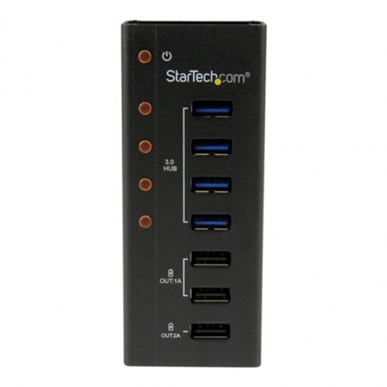 El **hub USB 3.0 de StarTech.com** es una solución compacta y resistente, ideal para entornos profesionales donde se requiere una ampliación eficiente de puertos y la posibilidad de cargar dispositivos simultáneamente. Con una carcasa de metal duradera y opción de **montaje en pared**, está diseñado para ofrecer rendimiento, organización y fiabilidad en estaciones de trabajo, escritorios compartidos o instalaciones industriales ligeras.