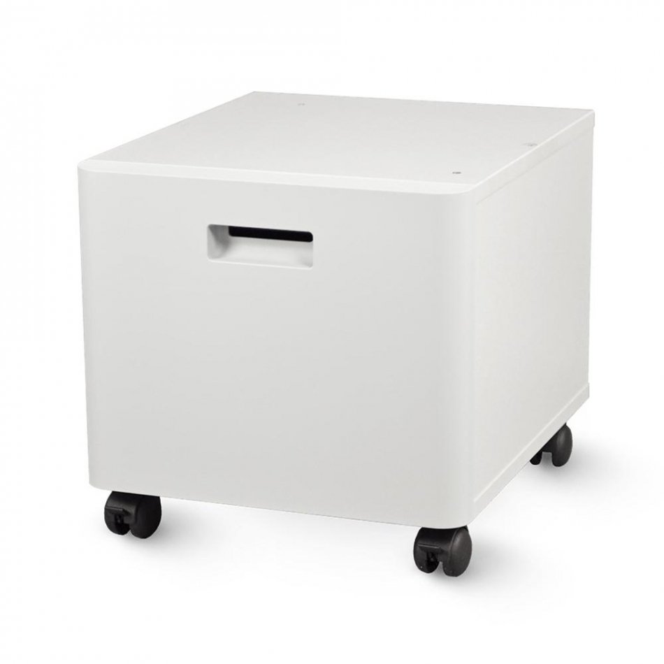 El diseño de este soporte no solo ofrece estabilidad para el equipo, sino que también incluye espacio interno para almacenar **paquetes de papel, manuales o consumibles**, manteniendo el entorno ordenado y funcional.