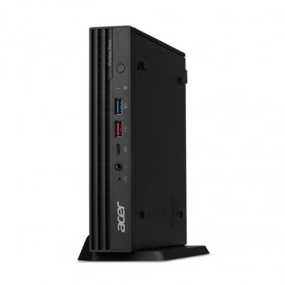 Mini PC compacto de tipo chasis pequeño (menos de 3 litros), en color negro, compatible con montaje VESA y soporta colocación tanto horizontal como vertical. Incluye ranura de seguridad Kensington y antena 2x2.