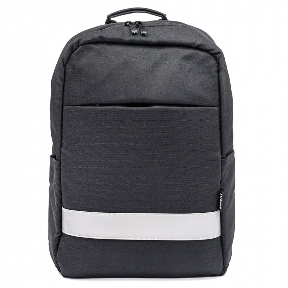 Incluye una tira reflectante de alta visibilidad, ideal para desplazamientos nocturnos. También dispone de un práctico bolsillo frontal con cremallera para acceder rápidamente a objetos pequeños.