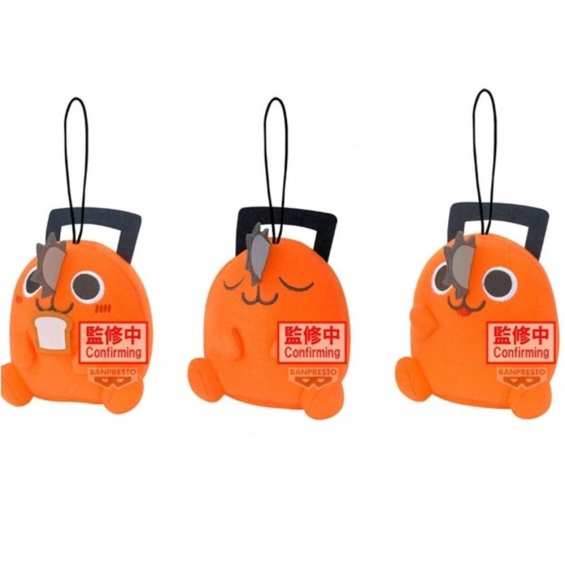 Peluche de Pochita en posición sentada, con detalles cuidados que capturan fielmente su aspecto entrañable en la serie. Su estilo chibi lo hace aún más adorable y reconocible.