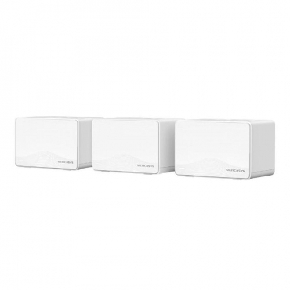 El **Mercusys Halo H27BE** es un sistema de malla Wi-Fi 7 pensado para ofrecer **conectividad ultrarrápida, estable y sin interrupciones** en hogares y oficinas de gran superficie. Con una cobertura de hasta **650 m²** y soporte para hasta **150 dispositivos conectados**, este pack de tres nodos es ideal para quienes buscan **velocidad, rendimiento y compatibilidad con los estándares más avanzados**, todo con un diseño discreto y elegante en color blanco.