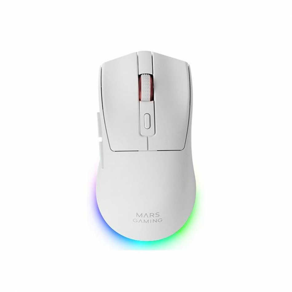 Características del Mouse Mars Gaming Wireless y Bluetooth MMT3 RGB Base de Recarga Magnética 14400 DPI Color Blanco