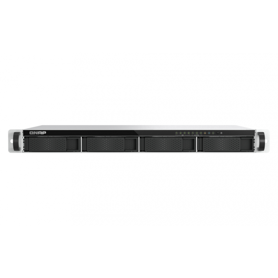 Gracias a su chasis compacto de solo **1U de altura** y **4 bahías de intercambio en caliente**, este NAS permite una alta densidad de almacenamiento en rack sin comprometer la ventilación ni el acceso a discos. Además, incorpora **tres ranuras M.2 / E1.S**, ideales para crear caché SSD y mejorar el rendimiento global del sistema.