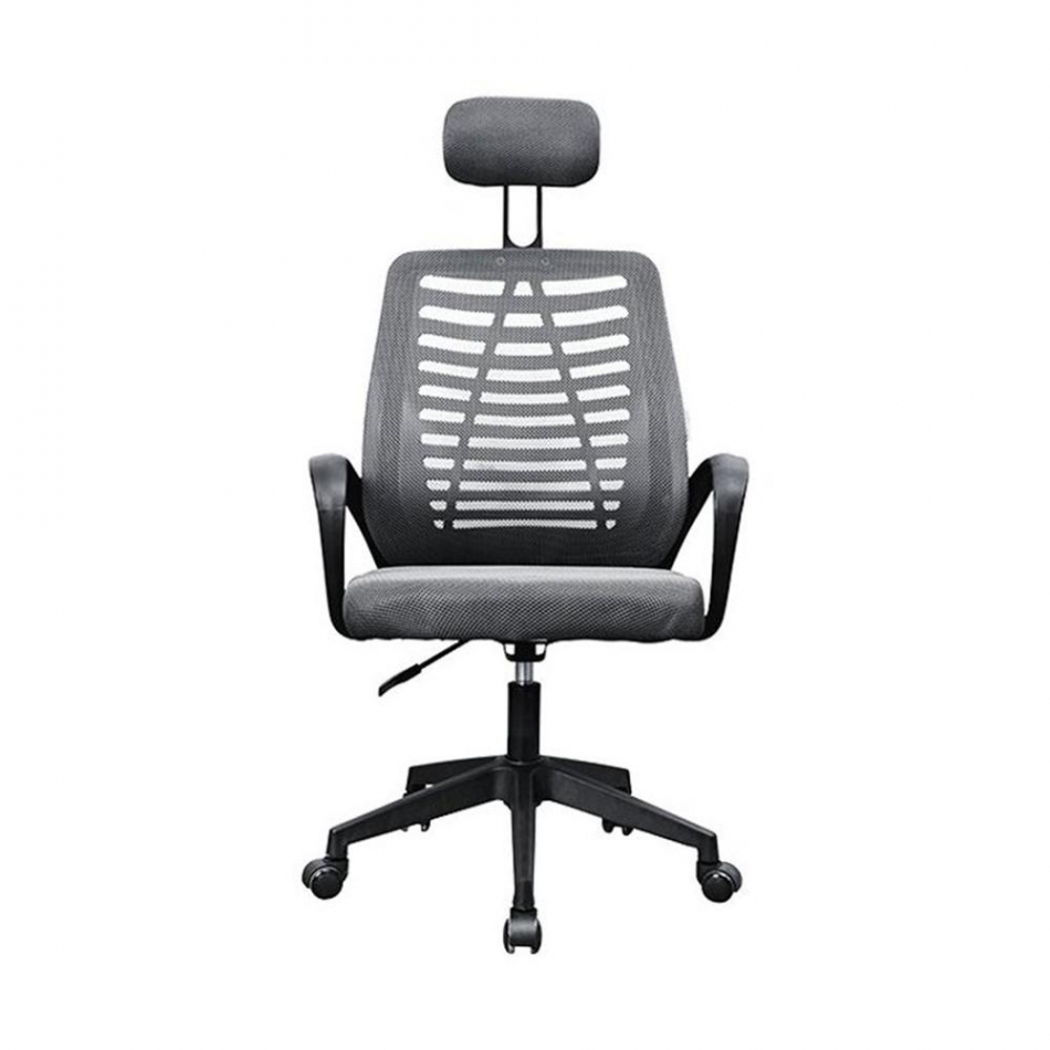 Equipada con reposacabezas ajustable y reposabrazos fijos, la silla permite un soporte adecuado para cuello y brazos. Además, incluye función basculante y ajuste de altura para adaptarse a diferentes necesidades de uso.